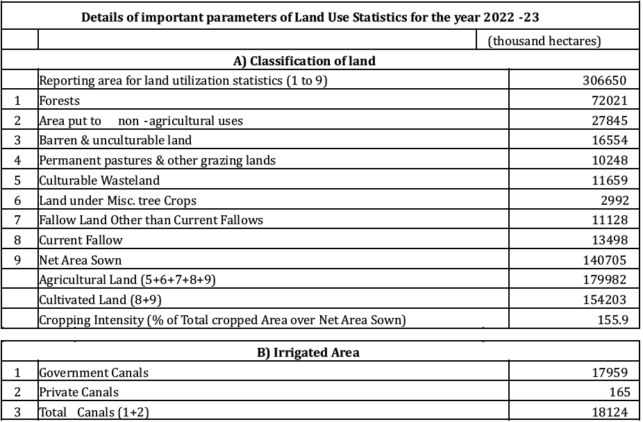 India Land Use Parameters