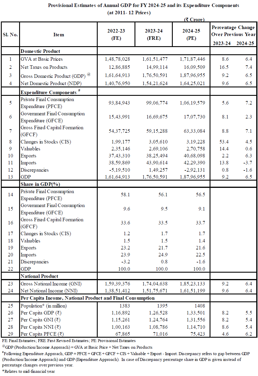 Provisional Estimates of GDP – FY 2024–25