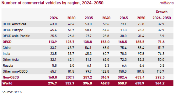 A large part of this increase is in the non-OECD, where the commercial fleet is set to expand by more than 290 million vehicles over the forecast period