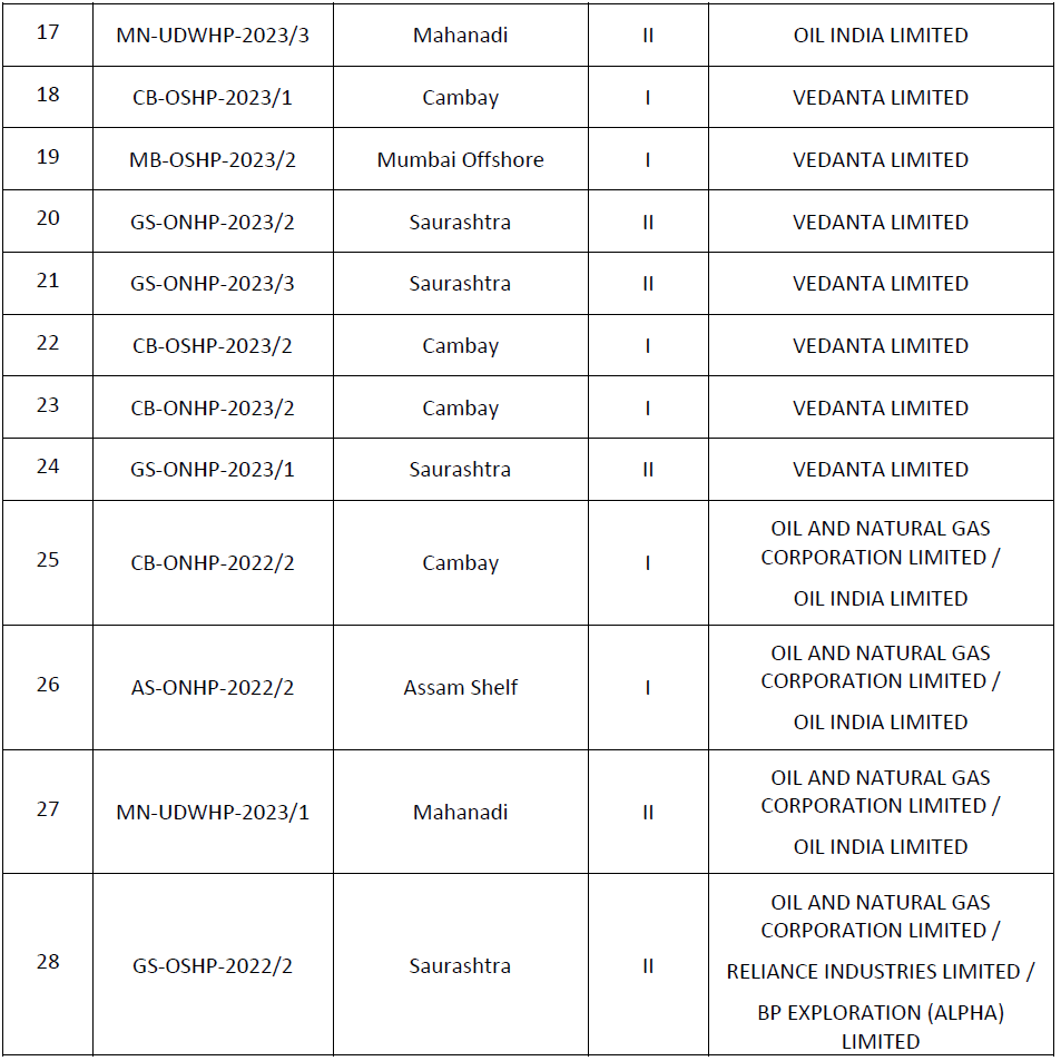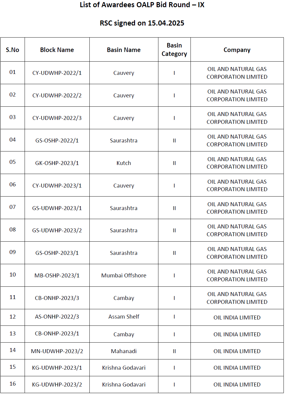 Table below captures list of awardees under OALP Bid Round – IX