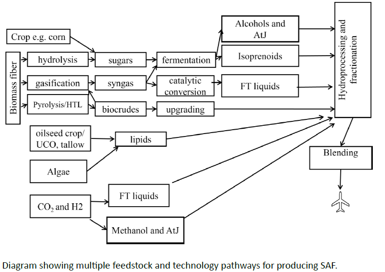 - The SAF technologies that can use these feedstocks are still undergoing commercialization, including the production of 2G2 ethanol from bagasse and rice straw and the alcohol-to-jet process