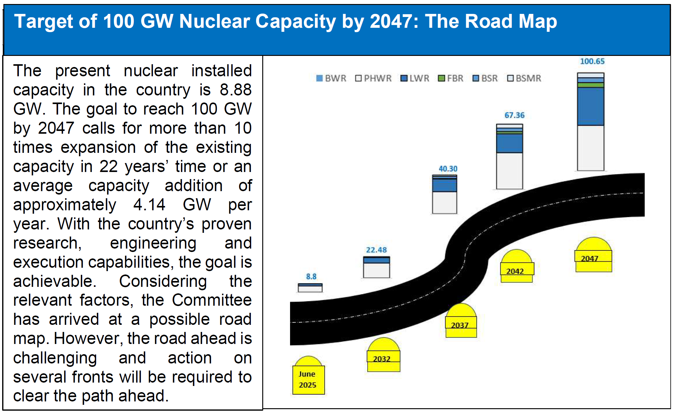 The Committee constituted by the Ministry of Power to prepare a roadmap for 100 GW nuclear capacity by 2047 has published its report dated 27th day of June 2025 on 14th October 2025