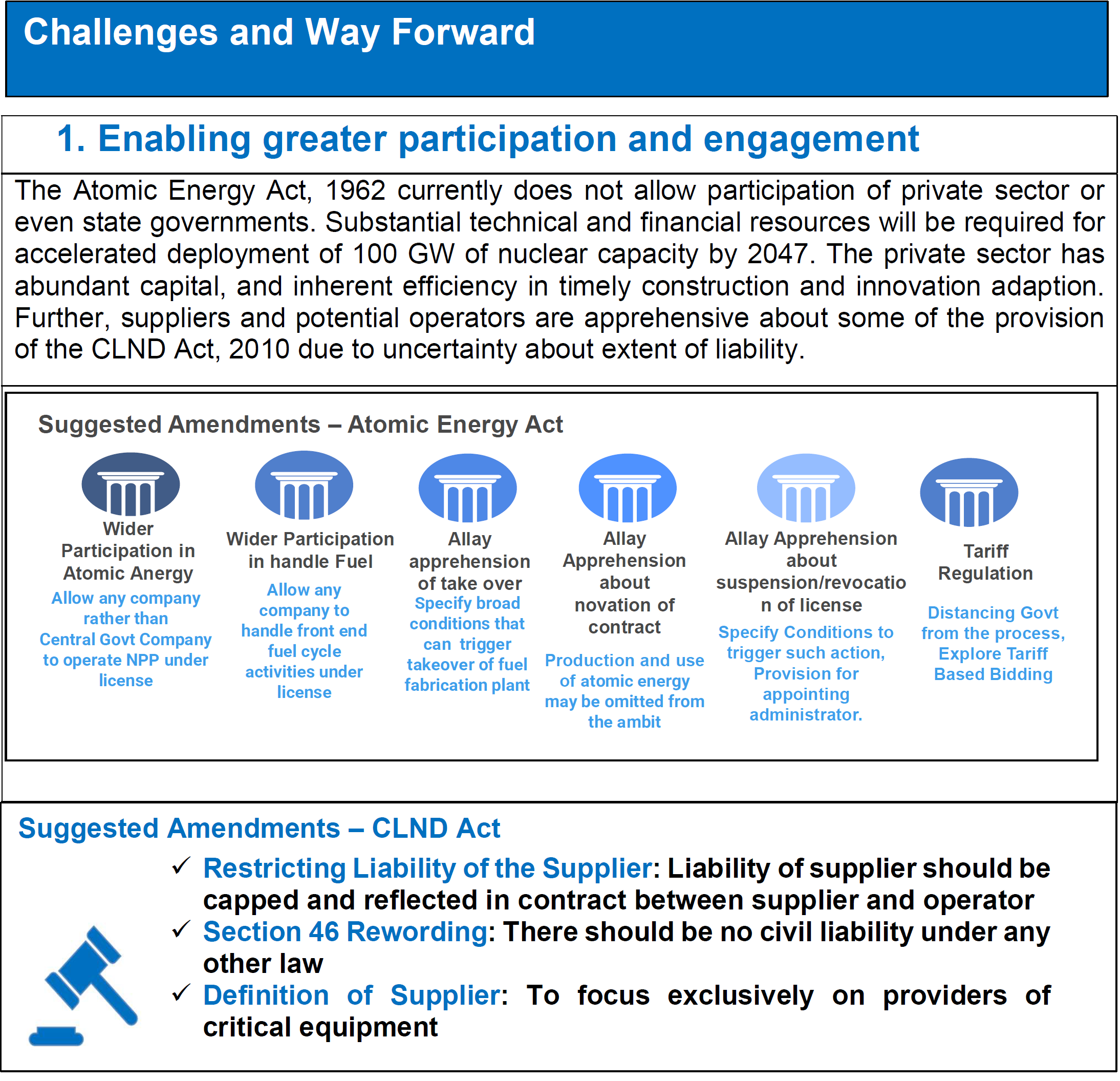 - The budget announcements on 1st February 2025 strengthened the resolve further by announcing a Nuclear Energy Mission for Viksit Bharat which would be facilitated through the amendments to the Atomic Energy Act and the Civil Liability for Nuclear Damage Act.