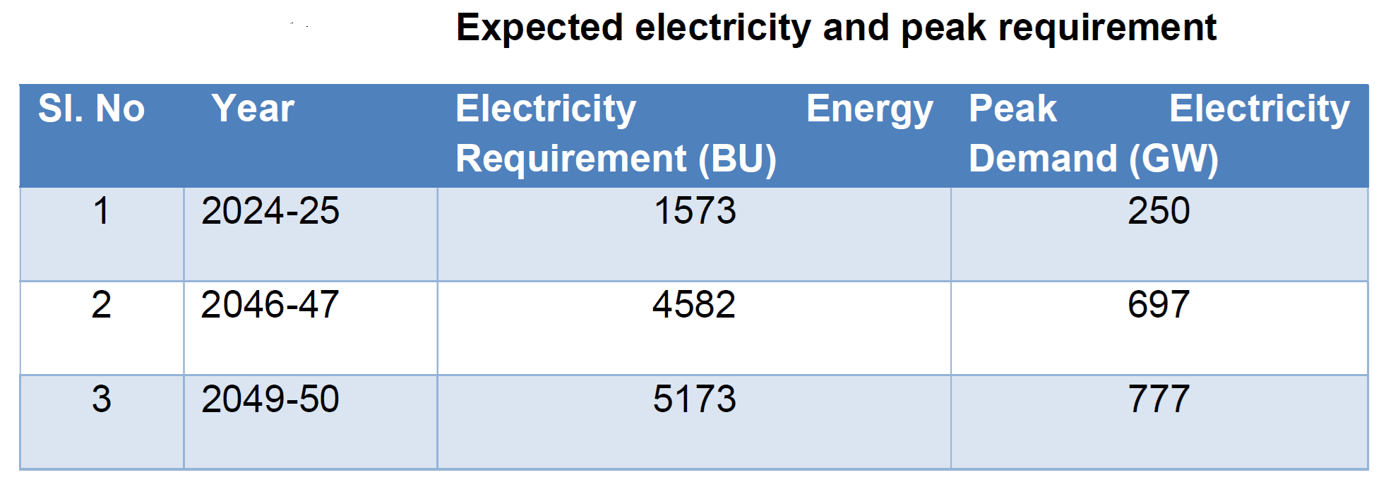 - We have also picked up Committee`s assessment of expected electricity energy requirement (in billion units, or same as TWh) and Peak Electricity Demand (in GW) for 2046-47 and 2049-50