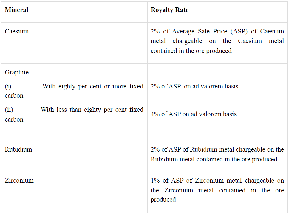 The Union Cabinet has approved to specify, revise the royalty rate of caesium, Graphite, Rubidium and Zirconium