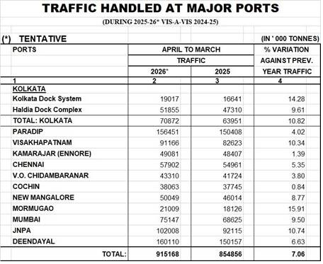 Major Ports Record 915 Million Tonnes Cargo in FY 2025–26