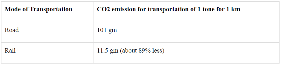 CO2 emissions in transportation by railways as compared to transportation by road is as under: