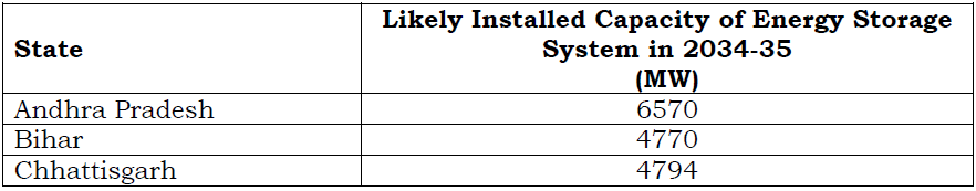Based on Resource Adequacy Plan for States till 2034-35, required installed capacity of Energy storage systems in major states is as per Table below: