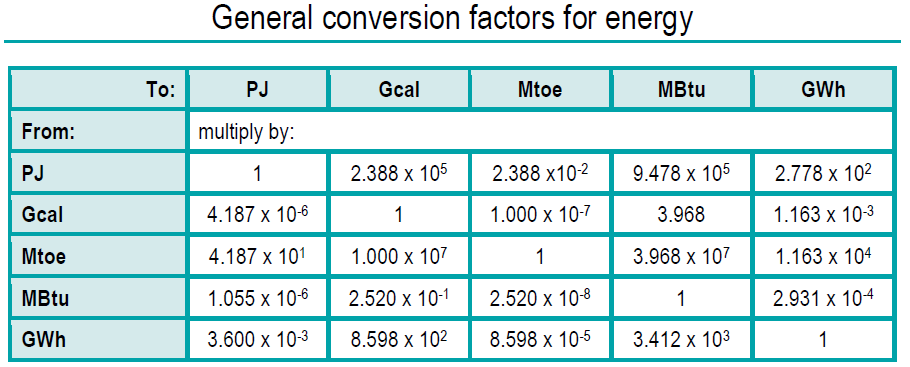 Conversion Factors: Primary Energy