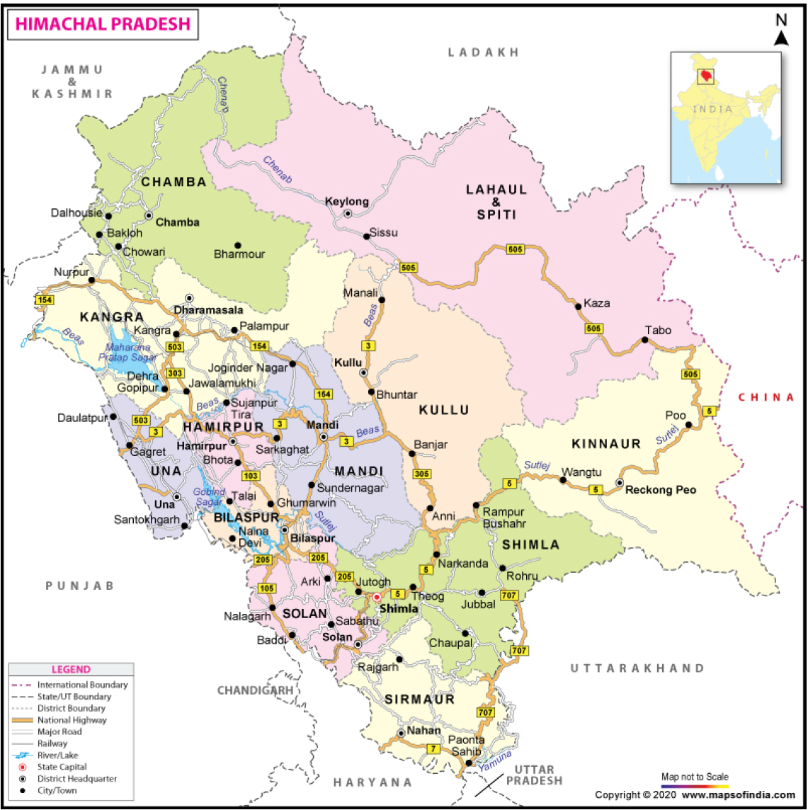 - Himachal Pradesh is located in north India. It is bordered by Jammu and Kashmir / Ladakh on the north, Punjab on the west, Uttar Pradesh on the south and Uttarakhand on the east