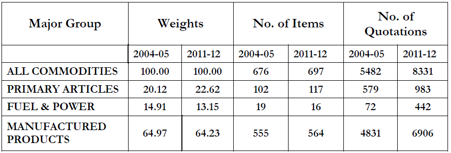 For quick reference, we capture major changes in weights, number of items and quotations between WPI 2004-05 and WPI 2011-12