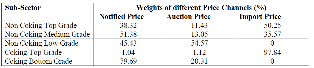 - The weight of the Notified Price Channel is further divided into a set of CIL, WCL and SCCL Notified Prices of different grades of coal and for different sectors
